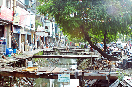 Con mương này ngăn cách hàng trăm nhà dân với đường phố Thanh Nhàn (phường Thanh Nhàn). Cả đoạn dài chỉ có một cây cầu nhỏ phục vụ việc đi lại. Để khỏi bị cô lập với con phố cách nhà vài bước chân, các hộ dân đành tự lắp ghép những cây cầu khỉ ọp ẹp, lát vài tấm ván gỗ bên trên. Nom qua chẳng khác nào những khu ổ chuột, nơi cư ngụ trái phép. Ông Trần Văn Khuynh, kinh doanh đá ốp lát đầu ngõ 167, bức xúc: “Kinh lắm chú ạ. Cửa nhà cách bờ mương chưa đầy 2m, thời tiết bình thường còn chịu được vì quen rồi, nhưng nắng to hoặc mưa một cái thì nó bốc mùi lên phát khiếp luôn. Mà chẳng hiểu sao một đoạn đã được làm mương cứng rồi mà chỗ này mãi chẳng động tĩnh gì cả”.