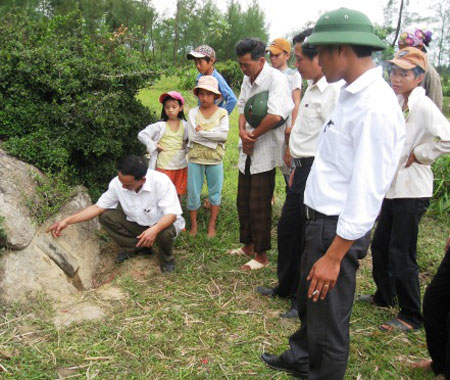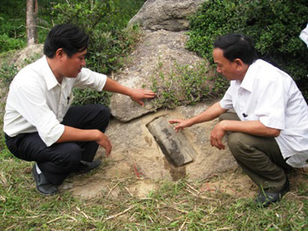 Hàng nghìn người kéo nhau đến xã An Lộc, huyện Lộc Hà, Hà Tĩnh để tận mắt xem một hòn đá lạ, trên đá có biểu hiện ký tự chữ Hán.