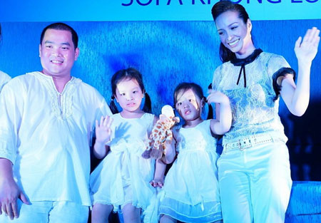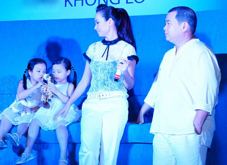 Chiều 7/4, vợ chồng nhạc sĩ Minh Khang và cựu người mẫu Thúy Hạnh dẫn hai con là các bé Suli, Suti đi dự buổi ra mắt