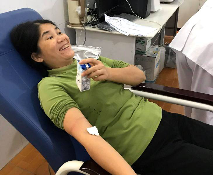 "Trước đây, tôi có tham gia hiến máu tình nguyện do Phòng Giáo dục và Đào tạo huyện phát động nên biết mình thuộc nhóm máu O, thuộc nhóm máu hiếm. Do đó, khi nhận được thông báo từ trường tôi tình nguyện hiến cho bệnh nhân", chị Bình tâm sự.