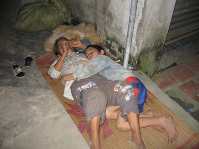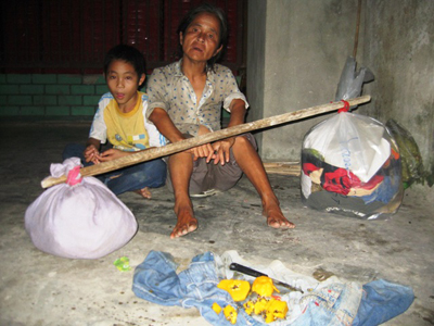 Hai mẹ con người đàn bà ăn xin