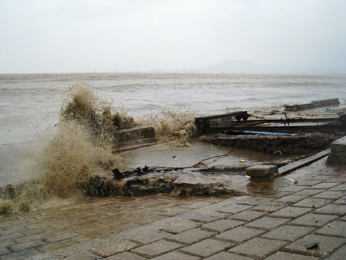 ![]() Tại huyện ven biển Hậu Lộc, Thanh Hoá, gió đã mạnh dần lên khoảng cấp 8, biển động. |