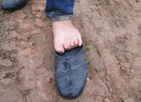 ![]() Một cô bé bị dị tật thiếu xương chân, thường phải đi dày hoặc dép rọ kín |