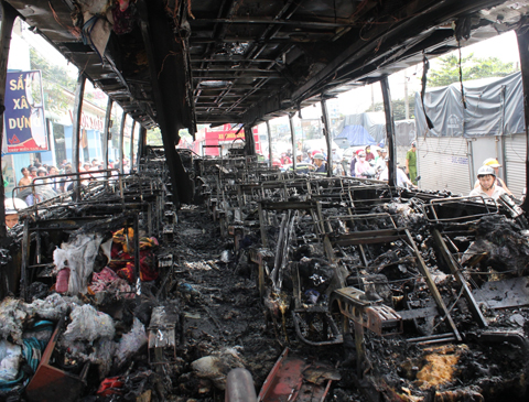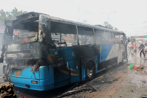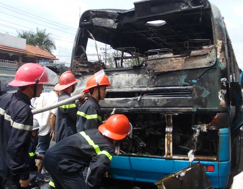 Nghe tiếng la hét hoảng loạn, tài xế vội tấp vào lề đường để mọi người xuống xe... Lửa nhanh chóng bao trùm phần khoang, ghế ngồi và hành lý của khách không kịp mang xuống đã bị thiêu trụi.