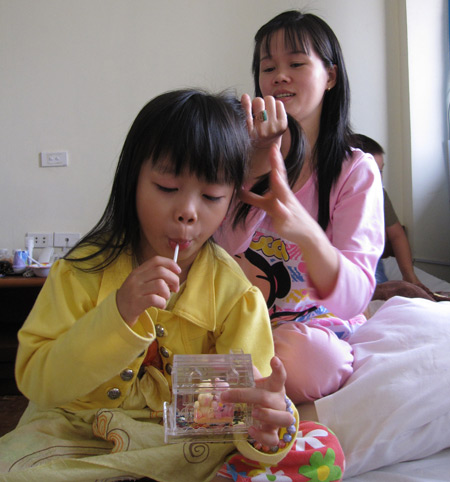 Trước khi đoạt giải quán quân của cuộc thi vài giờ, tại nơi ăn nghỉ của các bé trên đường Đội Cấn - Hà Nội, chúng tôi đã kịp chứng kiến khá nhiều những hình ảnh ngộ nghĩnh của một "ngôi sao" tương lai - nếu được ươm mầm.