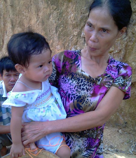 Cháu Thái Thị Dung may mắn thoát chết nhờ sự có mặt của người hàng xóm. |