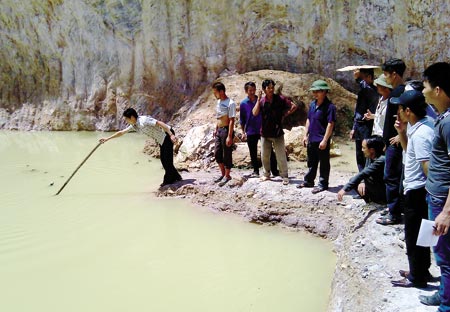 GiadinhNet - Chiếc hố khiến hai mẹ con bà Thủy chết đuối được hình thành từ việc khai thác đất cách đây khoảng một năm của một doanh nghiệp đóng trên địa bàn huyện Triệu Sơn.