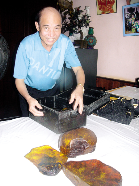 Nhà sưu tầm Dương Phú Hiến với bộ sưu tập hổ phách của mình.