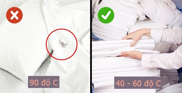 Nhiệt độ 40 đến 60 độ C được coi là tối ưu để khử trùng vải và loại bỏ bụi bẩn. Giặt bằng nước lạnh không làm tiêu tan vi khuẩn và bụi trên khăn trải giường và khăn tắm, trong khi nước nóng có thể làm hỏng vải.