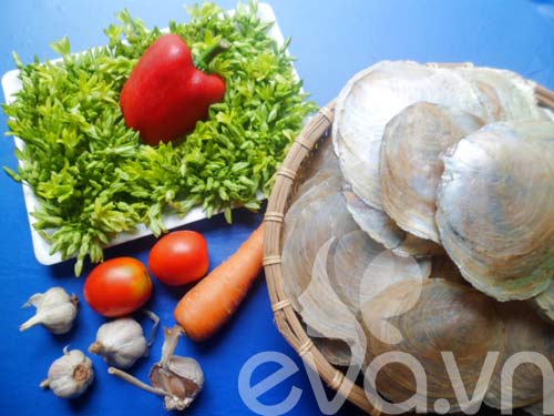 Bước 1: Sò điệp rửa sạch bằng cách đeo găng tay cao su vào, dùng búi sắt cọ rửa lớp vỏ sò thật sạch. Cho sò vào nồi luộc cùng với 1/4 bát con nước (Vì sò sẽ tiết nước khi luộc nên chỉ cần cho một chút nước phòng lửa to sẽ cháy đáy nồi). Đun đến khi sò mở miệng, tắt bếp, gỡ lấy ruột sò cho vào 1 cái đĩa. |