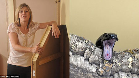 Bà Louise Perry (49 tuổi, Anh) đã sốc nặng khi phát hiện thấy một con rắn đen dài khoảng 1,5m trong tủ gầm cầu thang.
