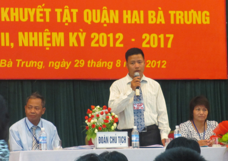 GiadinhNet - Ngày 29/8, Đại hội Hội người khuyết tật quận Hai Bà Trưng (Hà Nội) lần thứ 2 nhiệm kì II (2012 – 2017) đã được tổ chức tại Trung tâm bồi dưỡng chính trị quận ủy quận Hai Bà Trưng.