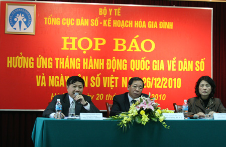 GiadinhNet - Sáng 20/12, tại Hà Nội, Tổng cục DS-KHHGĐ tổ chức họp báo hưởng ứng Tháng hành động Quốc gia về Dân số và Ngày Dân số Việt Nam 26/12/2010.
