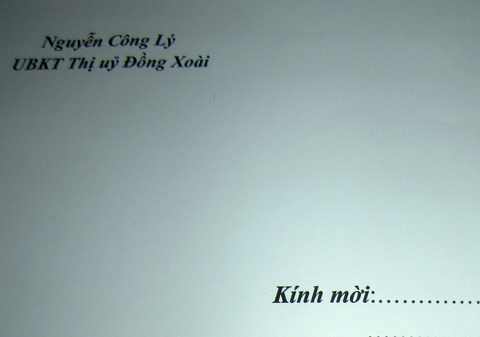 Khoảng 200 thiếp mời ăn giỗ mẹ gửi tới bạn bè, đồng nghiệp... của ông Lý đều ghi rõ: "Nguyễn Công Lý - UBKT Thị uỷ Đồng Xoài".