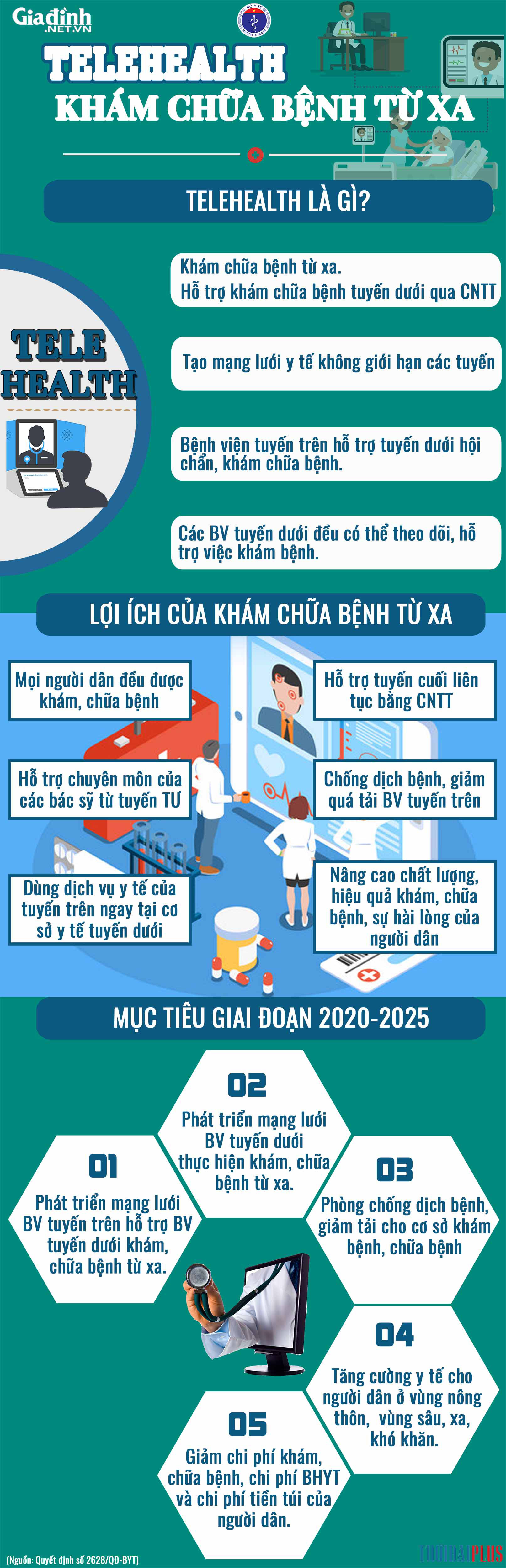 GiadinhNet - Đề án Khám chữa bệnh từ xa được Bộ Y tế triển khai ban hành kèm Quyết định số 2628/QĐ-BYT ngày 22/6/2020 sẽ là bước tiến mới giúp nâng cao chất lượng khám chữa bệnh cho người dân, đặc biệt là tại các vùng sâu vùng xa, miền núi, hải đảo.