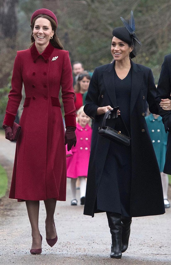 Kate và Meghan cùng tới nhà thờ ở Sandringham hôm Giáng sinh. Ảnh: PA.