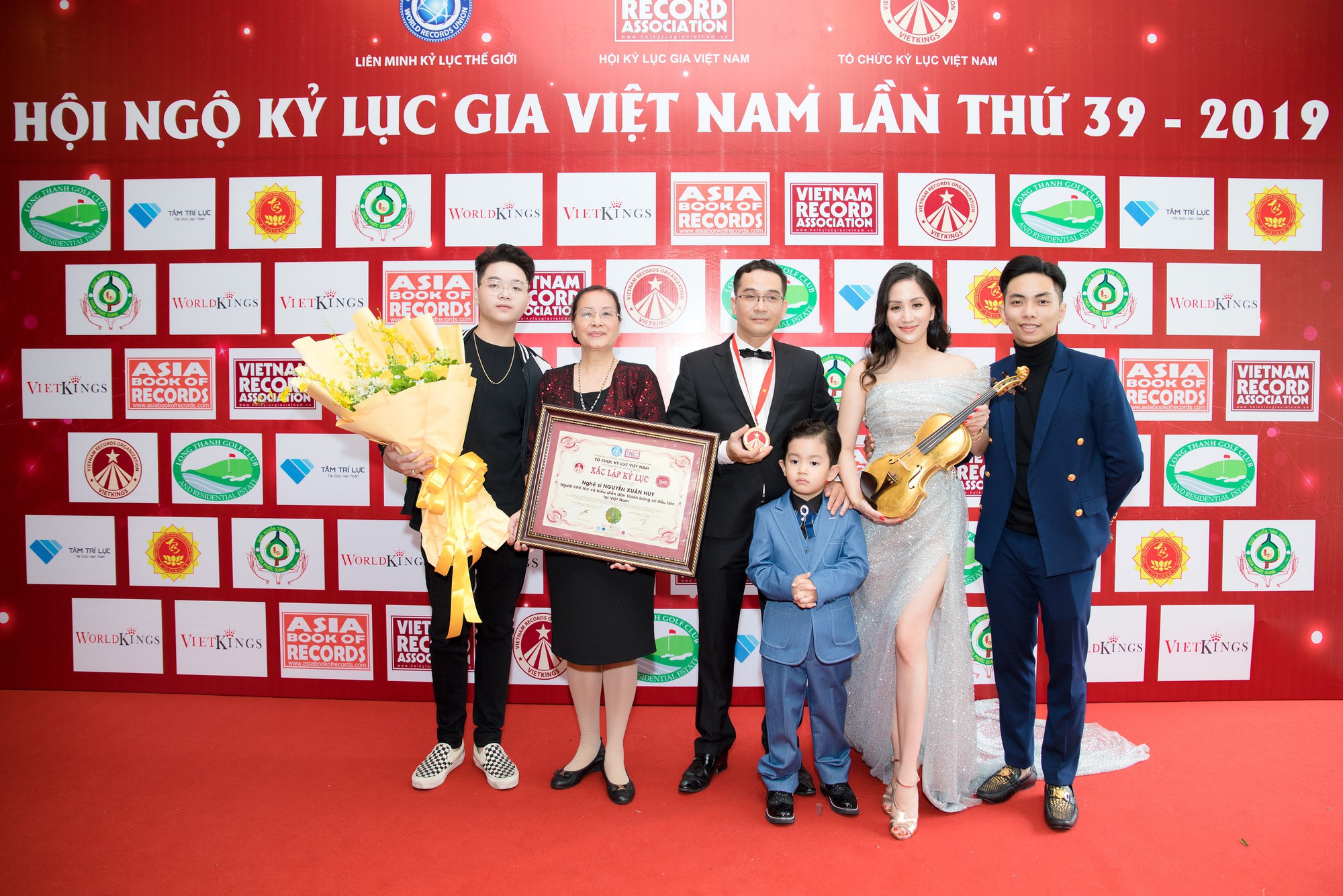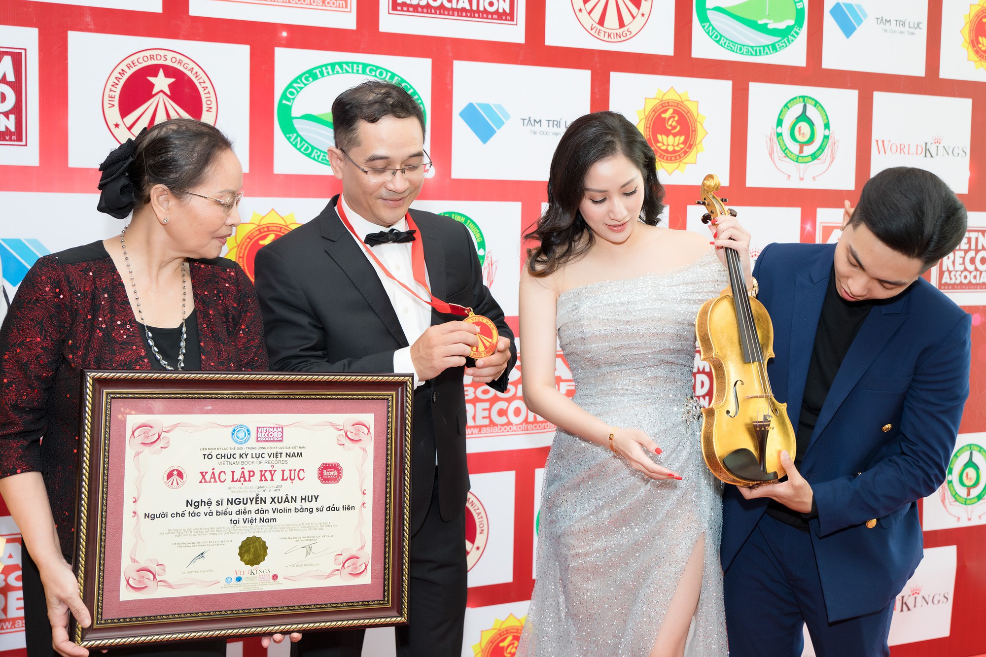 Mẹ Khánh Thi cũng góp mặt trong ngày vui của con trai, nghệ sĩ Xuân Huy nhận bằng khen của tổ chức Kỷ lục Việt Nam.