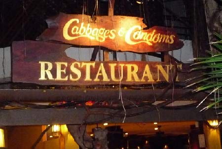 Lần đầu tiên khách hàng tới nhà hàng ở Thái Lan lại được hưởng thêm một lợi ích khác, đó là họ được tuyên truyền về tình dục an toàn. Có lẽ hơi mỉa mai khi “Cải bắp và Bao cao su” được thành lập cũng vì mục đích nâng cao nhận thức về HIV trong khi tọa lạc ở khu phố Sukhumvit, nơi nghề mại dâm phát triển rất nhanh.