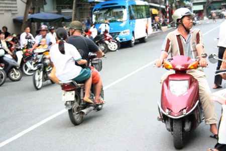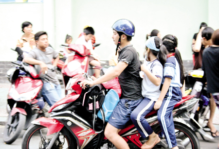 Trong khi đó, về phía nhà trường, nơi có thể tác động mạnh nhất tới học sinh và phụ huynh thì các biện pháp chủ yếu vẫn chỉ là tuyên truyền. Cô Nguyễn Thị Ngọc Huệ- Hiệu trưởng Trường tiểu học Nguyễn Thanh Tuyền (quận 3), cho biết: “Chúng tôi vừa phát đến phụ huynh học sinh một tờ cam kết không vi phạm Luật giao thông đường bộ, cụ thể là không chạy xe trái chiều, phải đội nón bảo hiểm khi đưa, đón con em mình. Phụ huynh đã ký và nộp lại cho nhà trường. Nhưng tôi vẫn thấy nhiều phụ huynh không đội nón bảo hiểm cho con em mình tại cổng trường”.