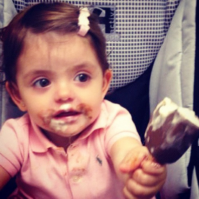 ![]() Cô nhóc Isabelle với đôi mắt to tròn đáng yêu, miệng dính đầy kem chocolate. |