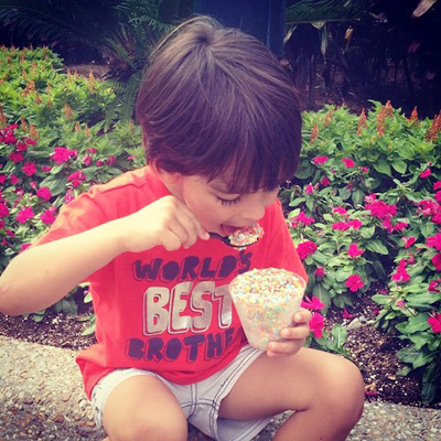 ![]() Cậu nhóc Luca khiến bố mẹ phì cười khi xúc một thìa kẹo lớn bỏ vào miệng. |