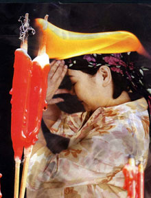 Những ngày đầu làm dâu của tôi ngộp thở trong nhang khói, lỗ tai lùng bùng những lời rì rầm tụng kinh gõ mõ. Sau một tháng cúng bái, chẳng biết đã hợp tuổi với chồng chưa nhưng sức khoẻ tôi kiệt quệ hẳn. Chồng tôi an ủi: "Thôi, em ráng chút để mẹ vui!".