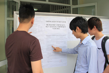 Thí sinh tìm hiểu tìm hiểu thông tin tuyển sinh ĐH, CĐ tại trường trước khi làm hồ sơ đăng dự thi. Ảnh: Quang Huy |