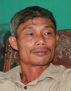 Ông Lê Văn Hiệu không cầm được nước mắt khi kể lại sự việc. |