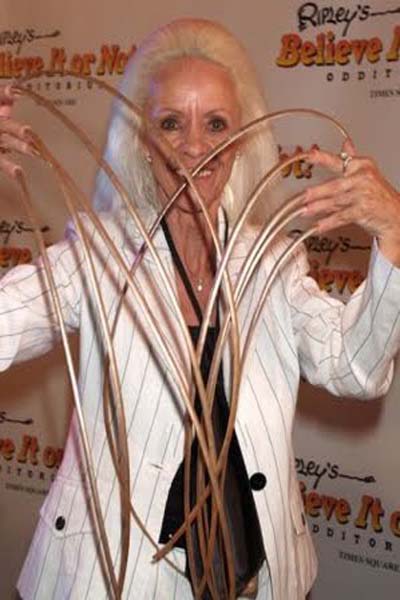 Bà Lee Radmond hoàn toàn không cảm thấy vướng víu bởi bộ móng tay dài nhất thế giới |
