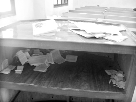Phao thi vứt đầy sau buổi thi công chức. Ảnh: PV |