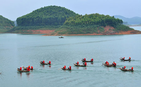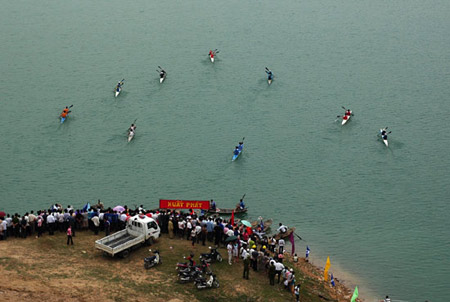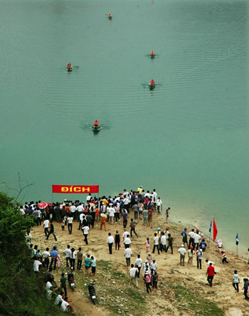 Hội đua thuyền “Âm vang Hồ Thác Bà” được tổ chức hàng năm vào ngày 27/6 hàng năm tạo lên sân chơi cho dân vùng hồ. |