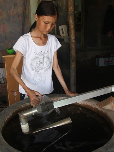 Với thân hình bé nhỏ Ý chỉ giúp mẹ những việc nhẹ nhàng. |