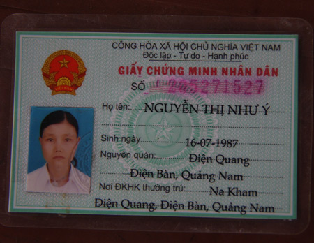 Chứng minh thư nhân dân của Nguyễn Thị Như Ý. Ảnh: Đ.H |