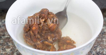 Ngâm 5 phút, me sẽ tan ra. |