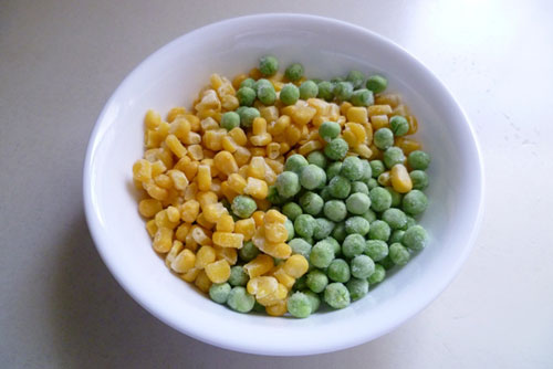 Đậu Hà Lan và ngô để nguyên hạt. |