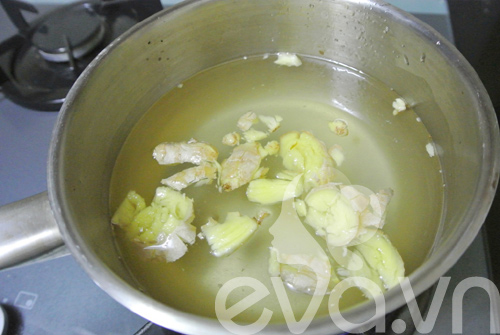 Bước 5: Đun nước sấu với 10gr muối đến khi nước sôi thì cho gừng đập dập hoặc giã nhỏ vào để nước sấu có mùi thơm. |