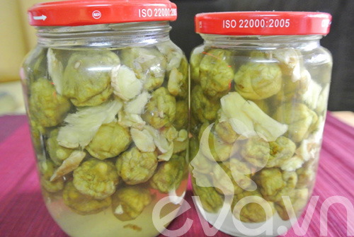 Bước 6: Xếp sấu vào lọ thủy tinh, đợi nước sấu thật nguội mới tiến hành trút vào lọ đựng. |