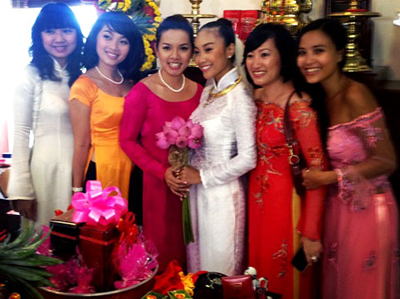 Lễ rước dâu sáng 29/7 của nữ ca sĩ diễn ra theo đúng nghi thức Việt Nam.