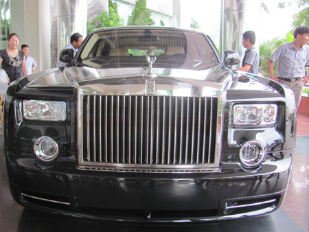 Chiếc siêu xe Rolls-Royce Phantom trị giá gần 40 tỷ đồng của vợ chồng ông Thạch, bà Hiền. |