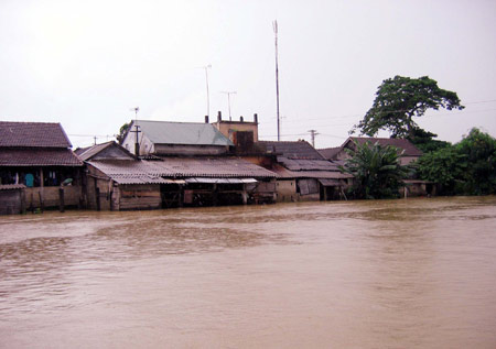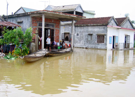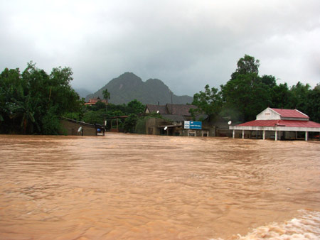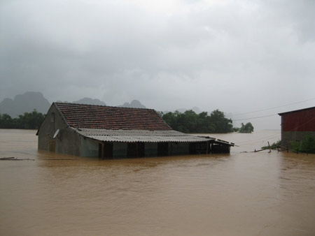 Nhiều ngôi nhà, làng mạc ở Quảng Bình bị chùm trong lũ dữ.