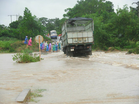 Nhiều tuyến đường ở Quảng Bình bị ngập nên các phương tiện đi lại khó khăn. Ảnh: Vĩnh Quý |