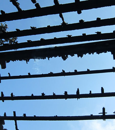 ![]() Mái nhà ở phòng khách bị cháy trơ khung |