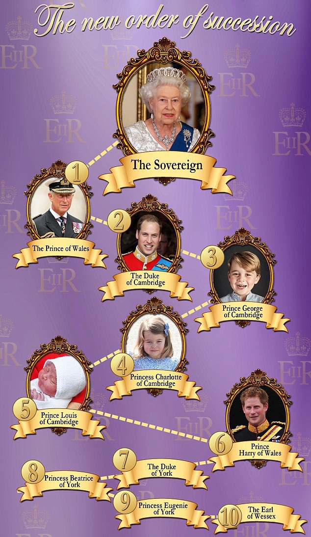 Thứ tự kế vị ngai vàng của Hoàng gia Anh sau khi hoàng tử Louis chào đời.
