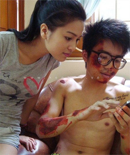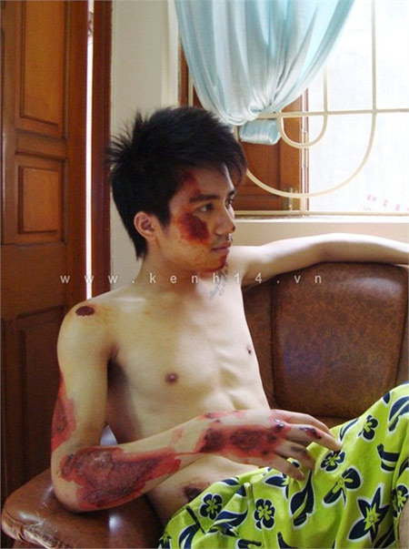 Không phải là người điều khiển phương tiện, nhưng Mạnh Quân lại bị thương khá nặng. Mặt và một bên tay gần như bị trầy xước hoàn toàn.