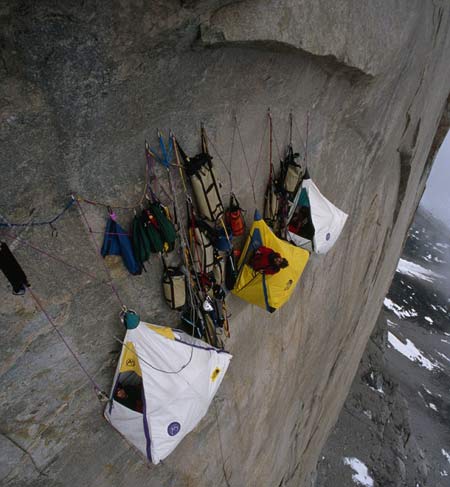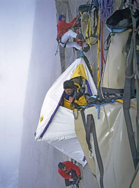 Cuộc thám hiểm của họ kéo dài trong nhiều tuần, nên họ phải ngủ lại ngay trên vách đá dựng đứng. Mọi sinh hoạt cá nhân, cũng như ăn uống chỉ bó hẹp trong một chiếc lều nhỏ bé chỉ vừa một người ở. Điều nguy hiểm nhất đối với họ là đá có thể lở và rơi từ trên cao xuống.