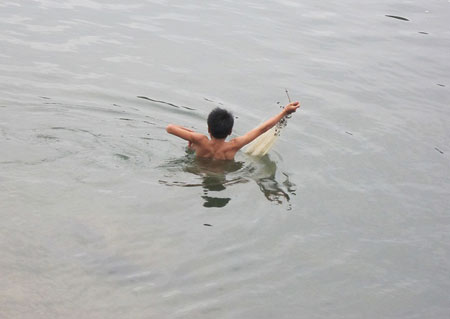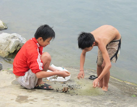 Vì mưu sinh mà nhiều em đã đánh đu tính mạng với thủy thần. Ảnh: ST |