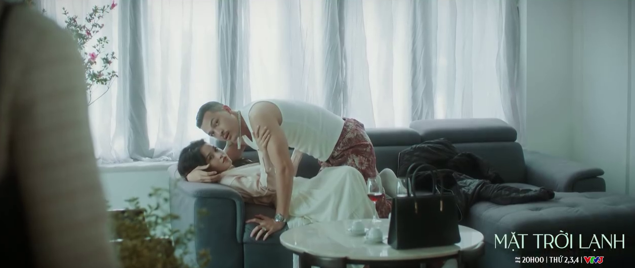 Trong tập 4 "Mặt trời lạnh" được phát sóng vào tối nay (9/6). Trong lúc Mai Ly (Tú Vi) và Tuấn Trần (Vũ Tuấn Việt) đang âu yếm trong phòng riêng của Tuấn thì một cô gái lạ tên Nhung xuất hiện. Cô không chút ngại ngùng mà còn lớn tiếng gọi anh, thản nhiên như chưa có chuyện gì xảy ra trước mắt.