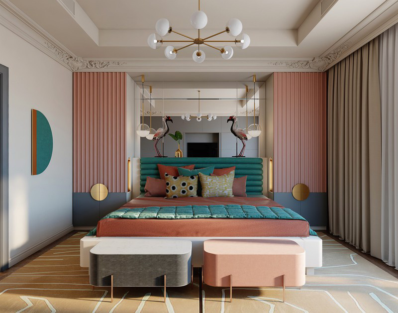 Nếu bạn đang tìm kiếm một màu sắc thứ hai có khả năng tương phản và bổ sung cho trang trí màu hồng, thì xanh ngọc bích là một lựa chọn tuyệt vời.