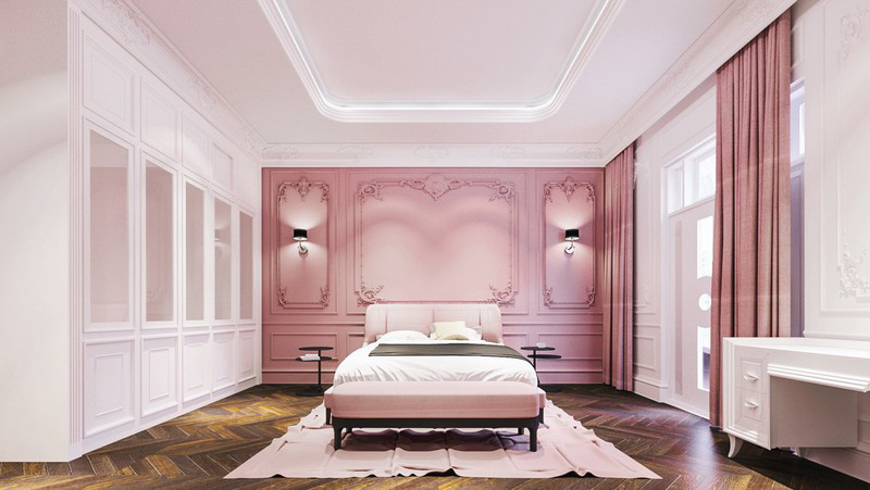 Mẫu phòng ngủ màu hồng được nhiều người ưa thích