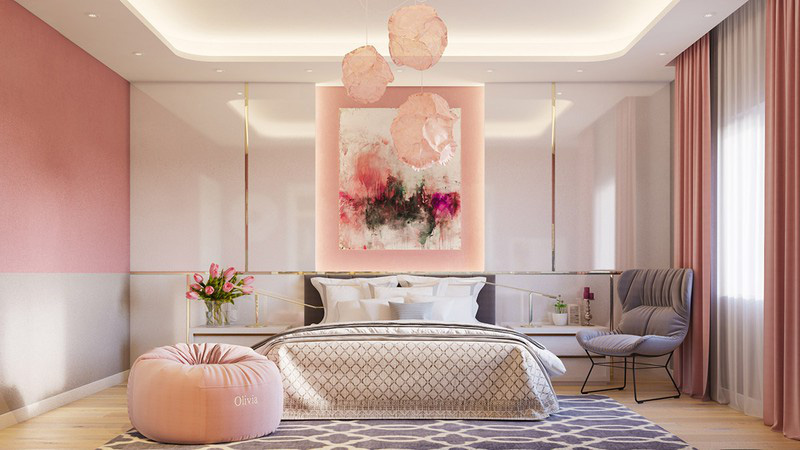 Màu hồng đã trở thành một màu nhấn rất được ưa thích, không chỉ trong các phòng bé gái mà còn cả trong phòng ngủ chính.